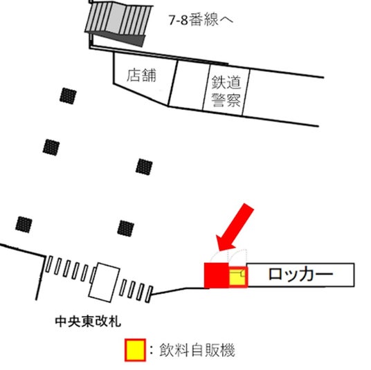 3.設置場所:JR新宿駅 中央東改札内 ロッカー付近 以下の位置
