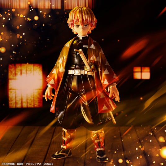圧倒的なサイズと造形密度を極限まで高めたプライズフィギュア『アニメ「鬼滅の刃」 Grandista-AGATSUMA ZENITSU-Another ver.』や描き下ろしイラストを使用した缶バッジ、アクリルプレートがナムコ限定アミューズメント景品として登場します。