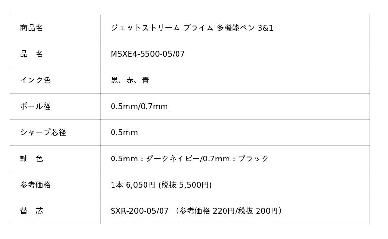 ジェットストリーム プライム 多機能ペン 3&1 ■マルチに使える4機能と特徴的なスリムボディ 黒、赤、青インクとシャープの機能を併せ持ち、1本でマルチにお使いいただけます。4機能を搭載しながらも極力スリムに仕上げたボディは、持ち運びしやすくさまざまなシーンでお使いいただけます。