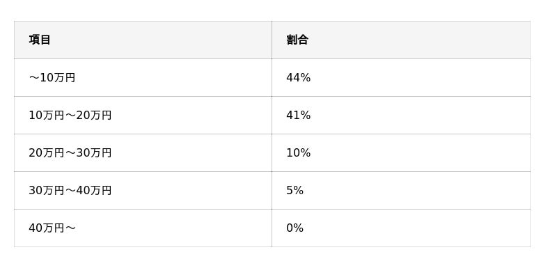- 料金総額に関して、「~10万円」(44%)、「10万円~20万円」(41%)と回答した人が大半
