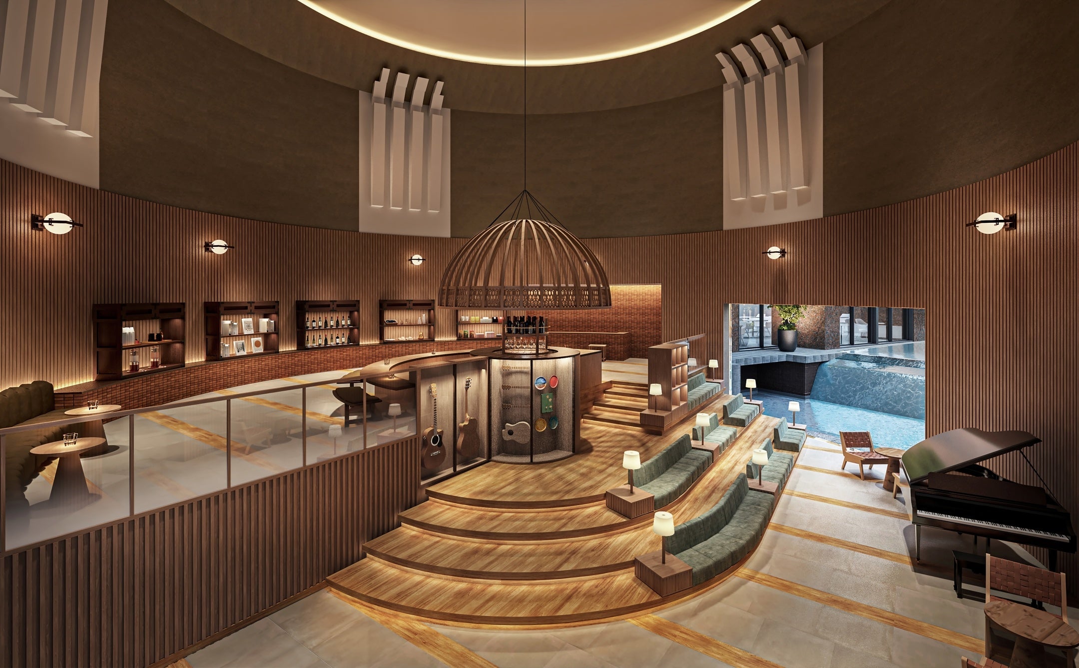 今回のリニューアルでは、音楽ホールを彷彿とさせる造形美が際立つ現代建築を舞台に、松本が育んできた「楽都」の文化と、信州のワインを堪能する滞在を提案します。象徴的なのは、地元信州のワインを主役にした「イタリアン」への進化です。冷涼な信州の地で生育するワインを味わう美食体験を追求した結果、旅館の王道である和食、会席料理から一歩踏み出し、界ブランドとしては初となるイタリアンという選択に辿り着きました。8種13通りの温泉とサウナが織りなす多彩な湯浴みとともに、建築・音楽・ワインが響き合い「松本エレガンテ」なひとときを奏でます。旅慣れたマチュアな世代の心を満たす、洗練された温泉旅館の新たな形です。