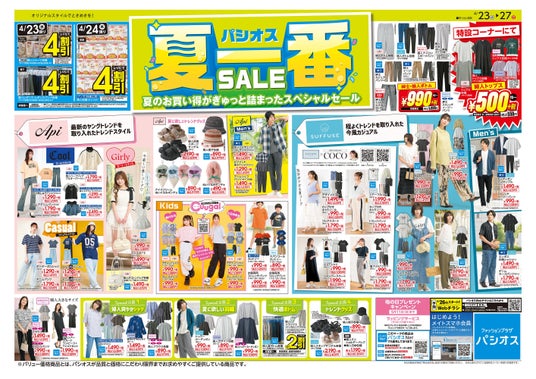 【夏一番SALE】ファッションプラザ[パシオス]にて4/23(水)よりスタート!