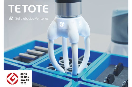 ブリヂストン ソフトロボティクス ベンチャーズではゴム人工筋肉の指を持つソフトロボットハンド「TETOTE」を開発、柔らかいものから硬いもの、大小さまざまなサイズ・形状・重さのものを“いい感じ”に掴むことができます。製造現場や物流倉庫での試験導入が進められています。