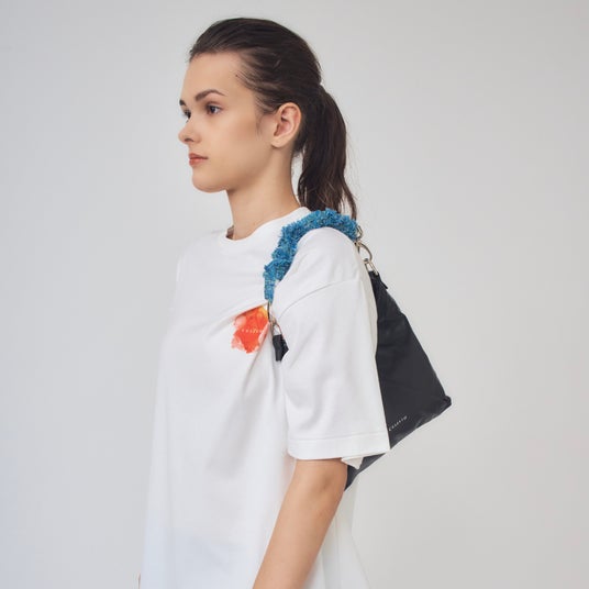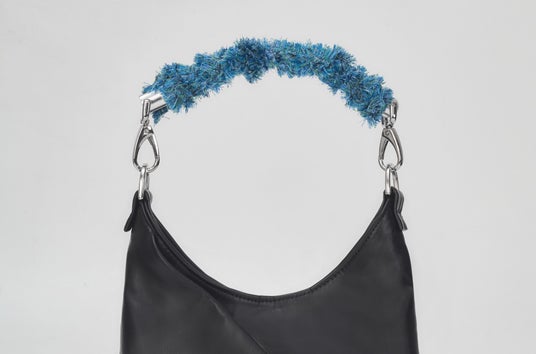 バッグ本体のカラー展開は、ブラックとダークブラウンの2色。ブラックには、ブルー系のオリジナル持ち手。ダークブラウンには、オレンジ系の持ち手がつきます。素材やカラーの組み合わせが目を引くオンリーワンなアップサイクルデザインにより、普段の外出も特別な気持ちにさせてくれます。