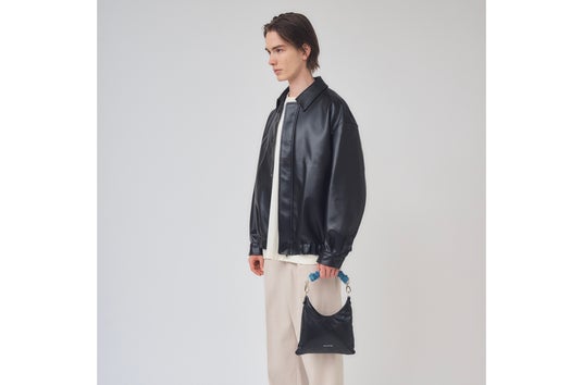 バッグ本体に使用したのは、CORN BIO HAM LEATHER。基布はリサイクルポリエステル、ポリウレタン樹脂の一部にとうもろこし由来のバイオ原料を使用し、*DMFフリーで製造しています。