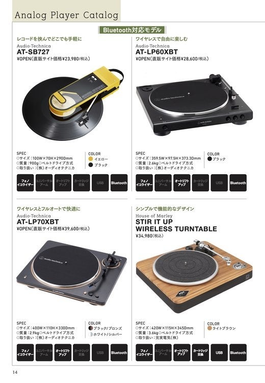 初めてアナログプレーヤーに出会う皆さん、オーディオ機器としてのアナログプレーヤーに出会いたい皆さんにおすすめしたい26モデルを選び、一覧にしました。フォノイコライザーを内蔵しているか、Bluetooth伝送に対応しているか、レコード針をヘッドシェルごと交換できるユニバーサルアームか否か、などなど、ちょっと踏み込んだチェック項目もアイコン化してみましたのでご参考にどうぞ。
