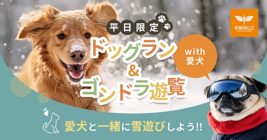 ウイングヒルズ白鳥リゾートでは、平日限定でドッグランエリアを新設。リードを外して、愛犬と一緒に雪遊びを存分に楽しむことができます。また、滑走はできませんが、愛犬と一緒にゴンドラに乗って、標高1,350mの山頂からの絶景を楽しむことができます。