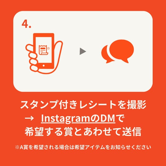- 対象期間中のスタンプ付きレシートをInstagramのDMで送信すること