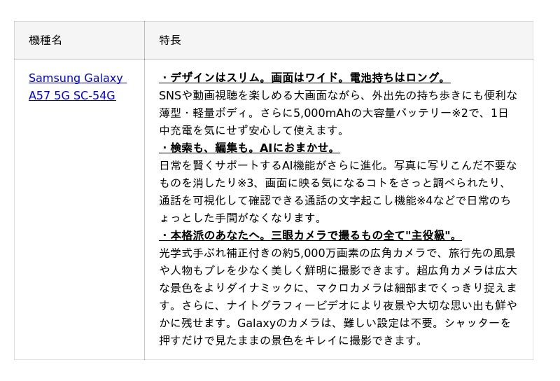 ドコモ、「Samsung Galaxy A57 5G SC-54G」を発売
