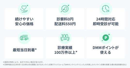 「美」の可能性を追求し続けている。 ■「DMMオンラインクリニック」について 「医療で人々を幸せにする」をミッションとして、誰でもどこからでも通える、医療を身近にするサービスを提供することで、人々の健康的な生活を守りQOL向上の実現を目指しています。 【DMMオンラインクリニックの特徴】
