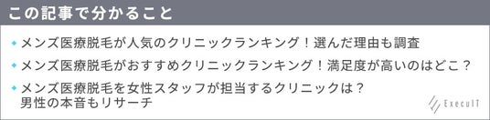 株式会社ExecuITが運営している脱毛情報メディア「ExecuIT」では、メンズ脱毛や女性の医療脱毛に関するコンテンツを発信しています。
