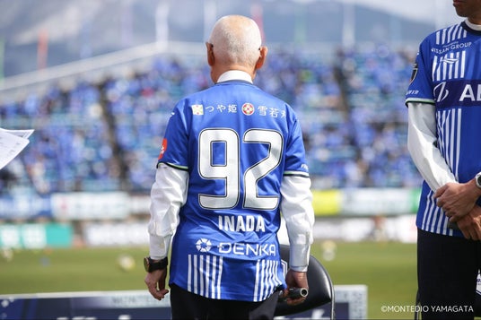 試合前には、世界最高齢アイアンマン・稲田弘氏をはじめ、SCOグループ代表取締役社長・玉井雄介、モンテディオ山形代表取締役社長・相田健太郎氏らが登壇し、「3つの数字」にまつわるトークショーを開催。