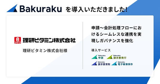 すべての経済活動のデジタル化を目指す株式会社LayerXは、業務効率化クラウドサービス「バクラク」シリーズが、理研ビタミン株式会社(代表取締役社長 山木一彦、以下 理研ビタミン)に導入されたことをお知らせします。