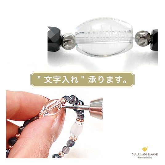 オリジナルチャームと水晶には、ハワイ語で「神に護られた」という意味を持つ「malulani」と刻印。 持つ人に「神のご加護がありますように」との祈りをのせています。