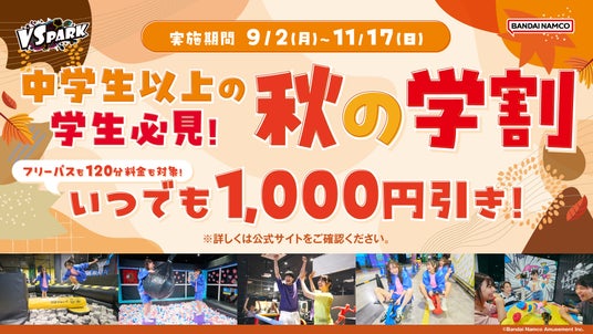 中学生以上の学生は毎日いつでも1,000円引きで遊べる!「VS PARK 秋の学割」概要