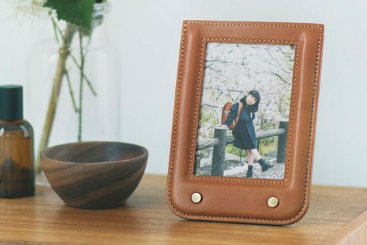 L版の写真を入れられる、鋲が印象的なランドセル型のフォトフレームです。小学生時代の写真や家族旅行の写真を入れたり。おじいさま、おばあさまへのプレゼントにされることも多い製品です。