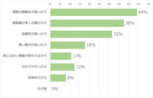・企業探しのツール・サービスで役立つと感じるポイントは「網羅性」が最も高い(44%)