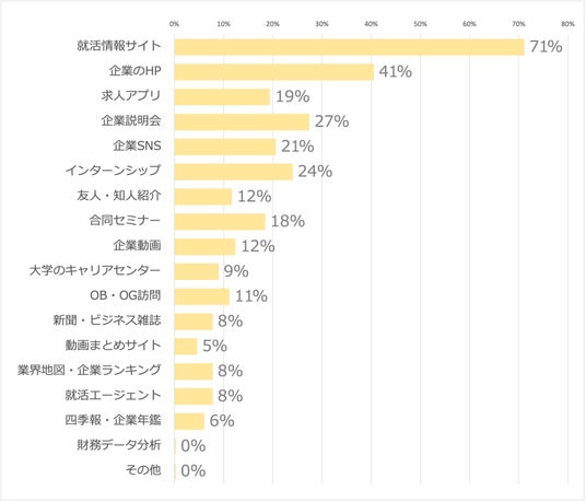 ・就活生が企業探しに最も使っているツールは「就活情報サイト(71%)」