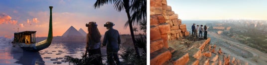 開館第1弾作品となる「Horizon of Khufu」は、4500年前の古代エジプトを舞台にしたクフ王とピラミッドにまつわる作品です。時空の制約から解放された冒険者たちは、ピラミッドの頂上からギザ、カイロを望み、「太陽の船」でナイル川を航行、ピラミッド内を探検し、4500年前の古代エジプト人の神聖な儀式にたどり着きます。