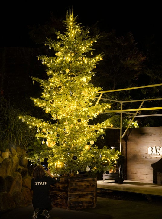昼は自然光に輝き、夜は優しいイルミネーションが空間を包み込みます。スタッフが一つひとつ手作業で取り付けたオーナメントの煌めきが、冬の湯河原を幻想的に彩ります。