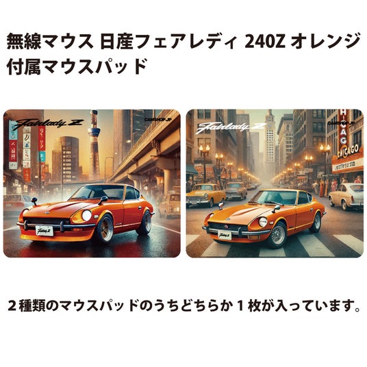 製品にはマウスパッドが付属。日産フェアレディ240Zを楽しむことができるオリジナルデザインで、デスクを彩ります。2種類あるうちのいずれかがパッケージに入るため、どちらのマウスパッドが入るのかはお楽しみとなっています。