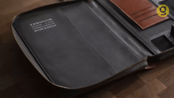 A5サイズのノートと金属製のペンなどを収納できるほか、仕事に不可欠なスマホやタブレットを充電できるバッテリー、ワイヤレス充電機能、スマホスタンドなど、どんな場所でも作業に取り掛かれる環境を簡単に作り上げます。