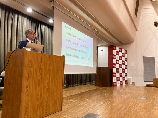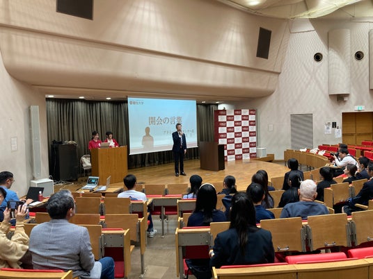 2024年11月3日(日)12時より、嘉悦大学のカエツホールで表彰式が執り行われました。審査員の岩月基洋 嘉悦大学経営経済学部准教授より入賞者一人ひとりに表彰状と賞品が手渡され、最優秀賞受賞者からは受賞の感想もいただきました。審査委員長の國田圭作 経営経済学部教授からの講評と、審査員も務めた濱地 徹氏(大手PR代理店の現役社員、嘉悦大学非常勤講師)からの「『伝える』から『伝わる』へ」をテーマにした広報記念講話も実施しました。永久寿夫 嘉悦学園理事長が閉会の挨拶を行い、式は盛況のうちに幕を閉じました。