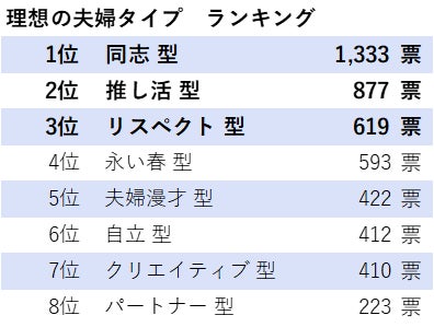 ■既婚の男女が考える理想の夫婦、第1位「同志型」、第2位「推し活型」