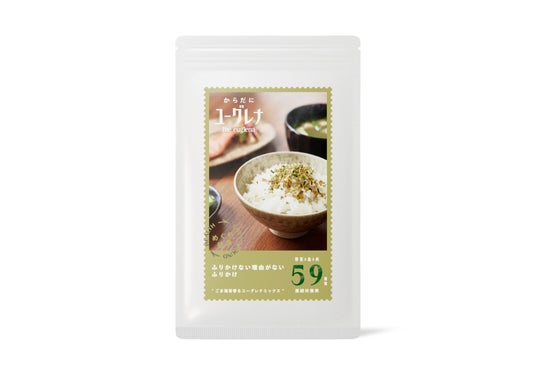 お好みの量を楽しめるようにチャック付きパウチにパッケージを変更し、ふりかけのおいしさがより伝わるデザインにリニューアルしました。野菜・肉・魚などに含まれる59種類の幅広い栄養素を摂取できる自然由来の「石垣島ユーグレナ」を配合したふりかけで、偏食や食べムラなどのあるお子さまから食が細い年配の方まで、栄養バランスの偏りが気になる幅広い年齢層の方にお勧めの商品です。