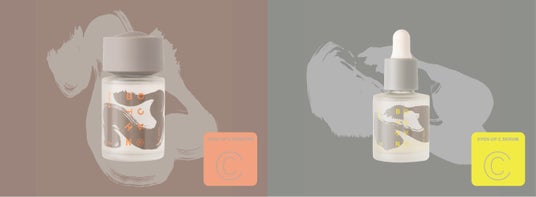 左)イーブンアップCブースター(導入エッセンス)、右)イーブンアップCセラム(美容液)