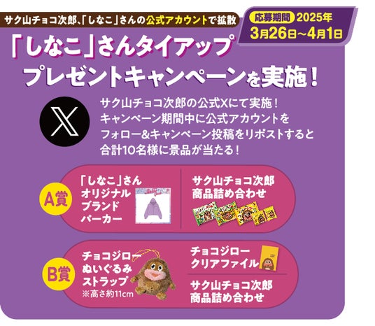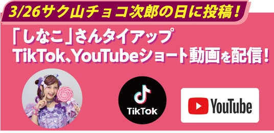「しなこ」さんとチョコジローのタイアップ!オリジナルブランドパーカーが当たるキャンペーンも実施!3月26日「サク山チョコ次郎の日」はTikTok、YouTube、Xを要チェック!