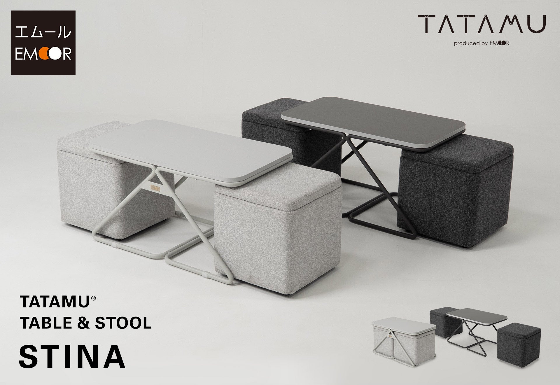 人間工学に基づいた空間有用性と安全な使い心地を両立するトランスフォーム家具ブランドTATAMU(R)を展開する株式会社エムール(東京都立川市:代表取締役 高橋 幸司)は、2026年4月7日より、テーブル&スツール『STINA』(以下、 スティナ)の販売を開始しました。
