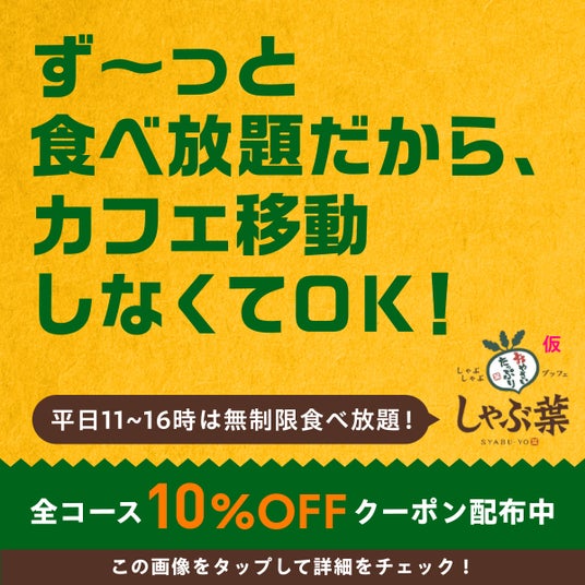 以上の調査結果を踏まえ、大学生が普段からランチ後にカフェに移動し、友人や恋人らとコミュニケーションを楽しんでいること、平日11時~16時のランチタイムは無制限食べ放題という事実は未だ認知率が低いと予測されることを仮説に、「食べ放題」だけではなく、しゃぶ葉の強みである食事やデザートなどのバラエティ性を踏まえた「アレンジし放題」、カフェ利用の要素で「しゃべり放題」を追加し、「どんなときも!平日ランチ最大5時間 食べ放題・アレンジし放題・しゃべり放題で」という訴求としました。