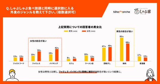 Q.しゃぶしゃぶ食べ放題と同時に選択肢に入る外食のジャンルを教えて下さい。(複数選択可)