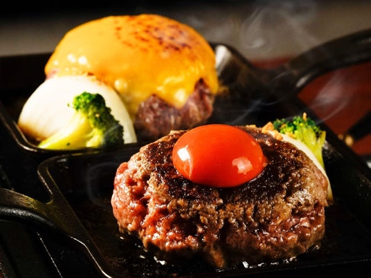 近江牛他、厳選した和牛100%で作るユッケハンバーグ。肉の美味しさを最も感じられる食感を追及し、部位や、ひき方にとことんこだわりました。