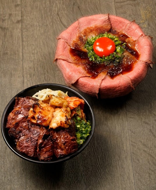 「にくぷく」のランチメニューがパワーアップ!「あふれるローストビーフ丼」「炭火焼き牛ハラミ丼」が登場