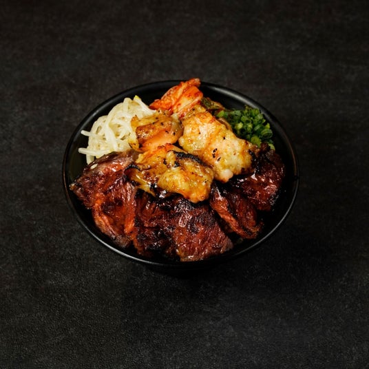 炭火で丁寧に焼き上げた特選ハラミをたっぷり120g盛り付けました。ナムルとキムチとの相性抜群スタミナ丼をお楽しみください。