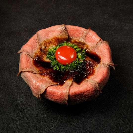 やわらかく炭火で炙った上質なタンと、べったら漬けのカリカリした食感が楽しめる、やみつきになる逸品。柚子胡椒マヨネーズと、わさびをお好みで加えていただくことで飽きることなく完食していただけます。見た目以上のボリュームと満足感を味わってください。