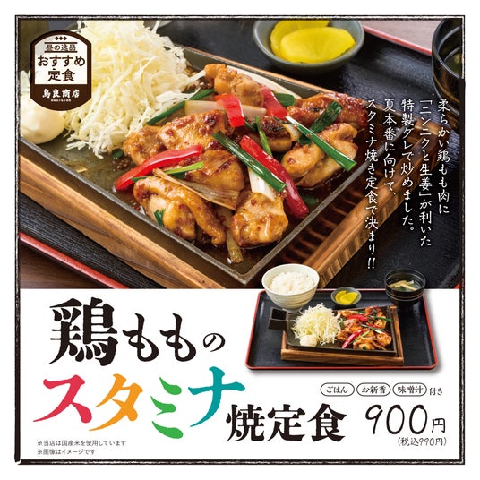 「にんにく×生姜」の香りが食欲を刺激!特製ダレで仕上げた鶏もも肉のスタミナ焼定食が、夏本番に向けて鳥良商店から登場!