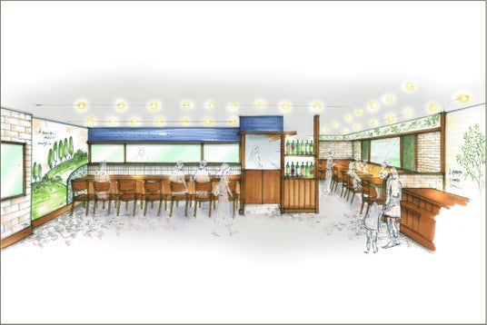生まれ変わった店内は、緑の絨毯を広げたような豊かな自然が魅力のイタリア中部 トスカーナをコンセプトにした空間が広がっています。トスカーナの風景、オリーブやアーモンドのイラストが温かみや心地よさをさらに演出。お一人でも気軽にお立ち寄りいただける、大人の雰囲気が漂うカウンターもご用意しております。