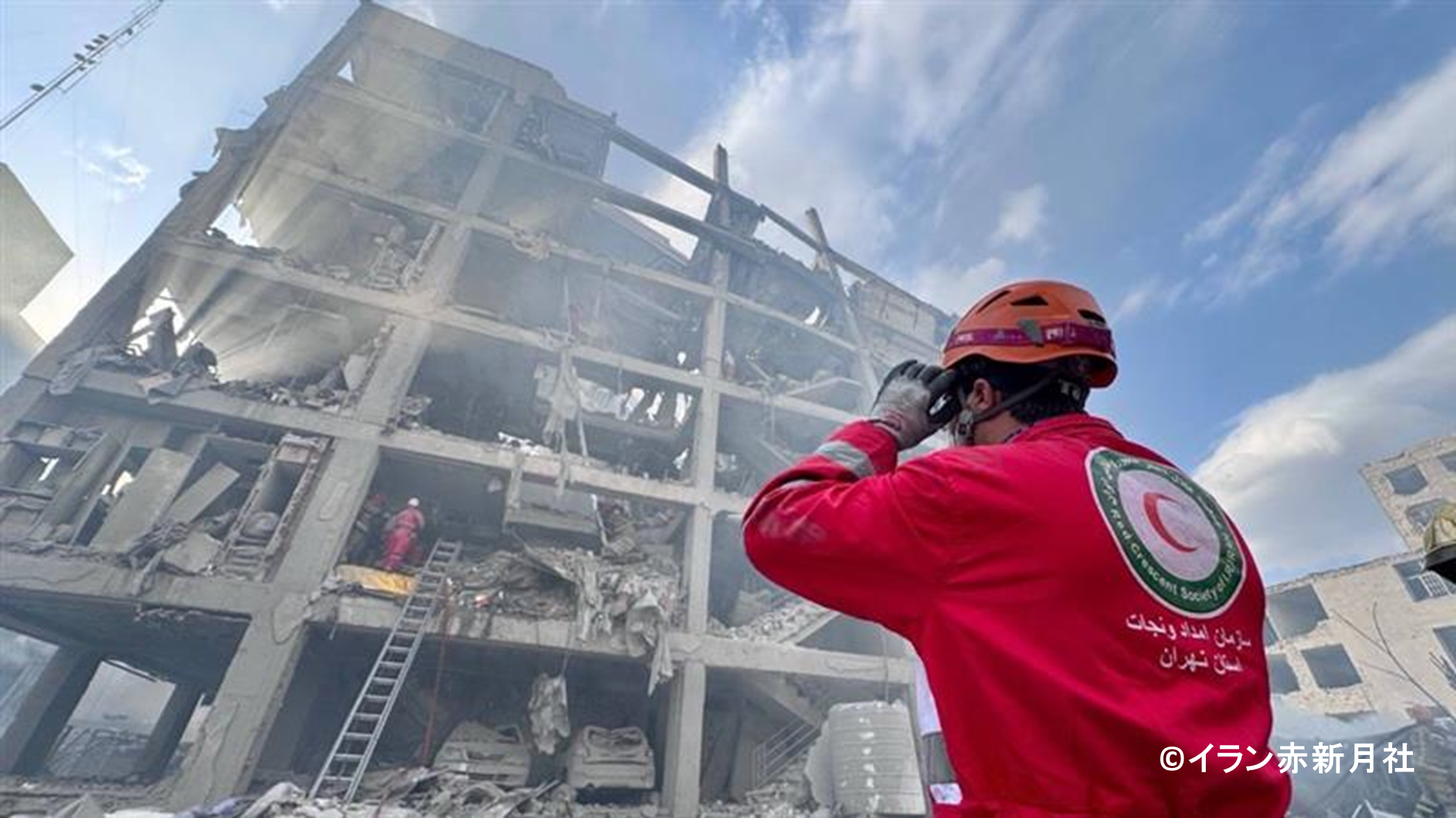 イランの首都・テヘランでの捜索・救助活動を行う現地赤新月社のスタッフ