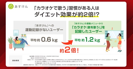 「カラオケで歌う」習慣がある人はダイエット効果が約2倍に!? あすけんとビッグエコーが、冬の健康づくりを応援!