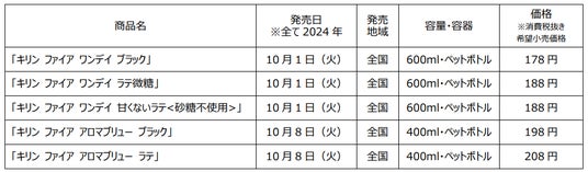 「キリン ファイア ワンデイ ブラック」「キリン ファイア ワンデイ ラテ微糖」をリニューアル