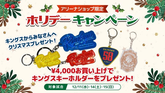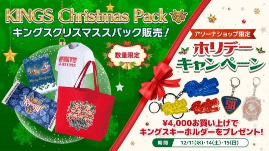 キングスから皆さまへクリスマスプレゼント!12月14(土)、15(日)にアリーナショップ限定で「キングスホリデーキャンペーン」を開催します。アリーナショップにて4,000円以上お買い上げごとにキーホルダーをプレゼントいたします。