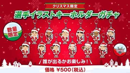 大人気のキングスガチャに、クリスマス仕様の選手イラストキーホルダーが登場!ホームゲーム会場のみの限定販売となりますので、キングス観戦の際にぜひお気に入りの選手をゲットしてください。