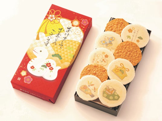 「良き年になりますように」の思いを込めて、定番の赤えび炙り焼きと、「今年もよろしくお願い致します」のメッセージや、お正月にちなんだ絵柄のえびせんべいが入った目出度づくしのえびせんべいです。新年のご挨拶にぴったりです。 ※販売期間:販売中~なくなり次第終了