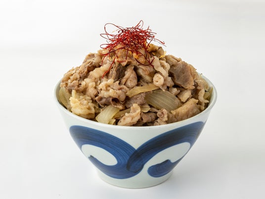 通常の純但馬牛牛丼の倍量を盛り付けたチャレンジメニューです。但馬牛の肉の旨みを、たっぷりとどうぞ!※販売期間:2024年12月26日~2025年1月10日 ※販売時間:10時~21時
