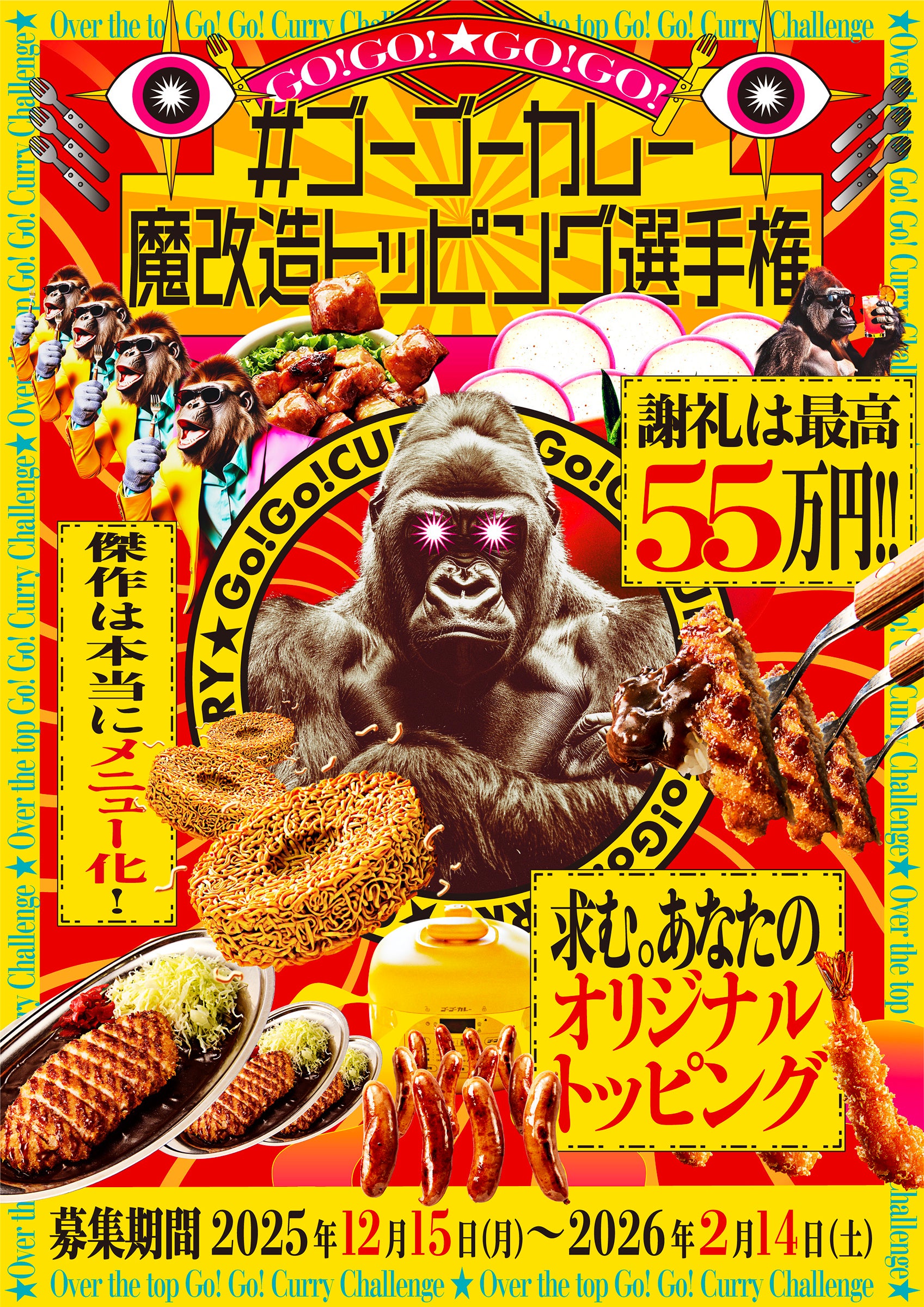 「#ゴーゴーカレー魔改造トッピング選手権」は 2025年12月15日~2026年2月14日(当日24時まで)応募可能です。詳しくは下記「#ゴーゴーカレー魔改造トッピング選手権」特設サイト、各種SNSからもご確認いただけます。