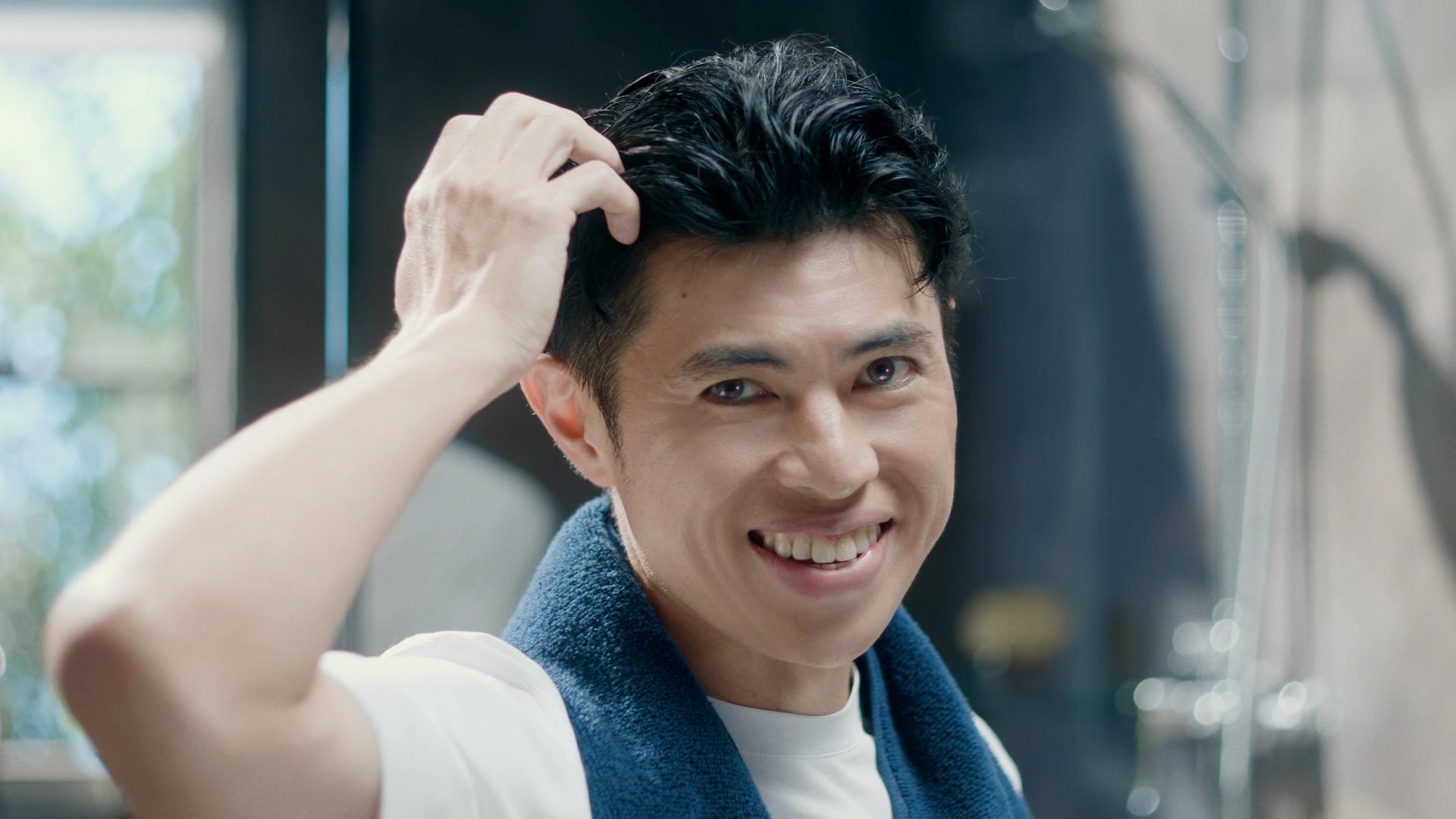 今回のCMでは、全世代から愛される持ち前の「明るさ」をあえて封印。ダークトーンのスタイリッシュなバスルームを舞台に、小島さんが普段とは違うクールな表情と鍛え上げられた肉体美を披露します。現代の男性が抱える「頭皮のニオイ・ベタつき」や「髪が細くなる」といった悩みに真剣に向き合い、サクセスによる本格的な頭皮ケアを表現しました。