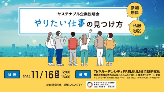県では、SDGsの実現に向け、将来の担い手育成や、企業等のSDGsに関する行動を後押ししています。こうした中、学生の就職活動において、「サステナブル」という視点が新たな企業選びの軸にもなっていることから、この度、かながわSDGsパートナー等の取組を学生に紹介し、企業理解を深めていただく「サステナブル企業説明会」を県で初めて開催することとしました。サステナブル企業がどういった活動をしているか興味・関心のある学生の皆様、ぜひご参加ください。